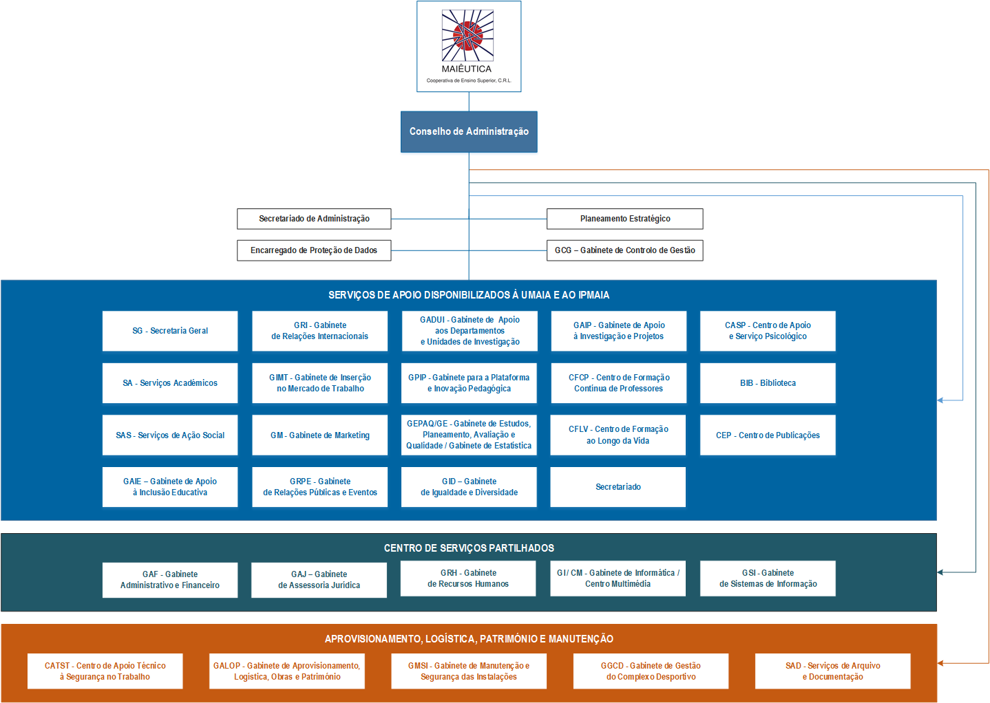 Esta simplificação das formas de organização permite o ajustamento das estruturas internas às atividades prioritárias da Maiêutica, da Universidade da Maia e do Instituto Politécnico da Maia, acentuando a adaptabilidade e promovendo a polivalência e a mobilidade entre os diversos setores​.